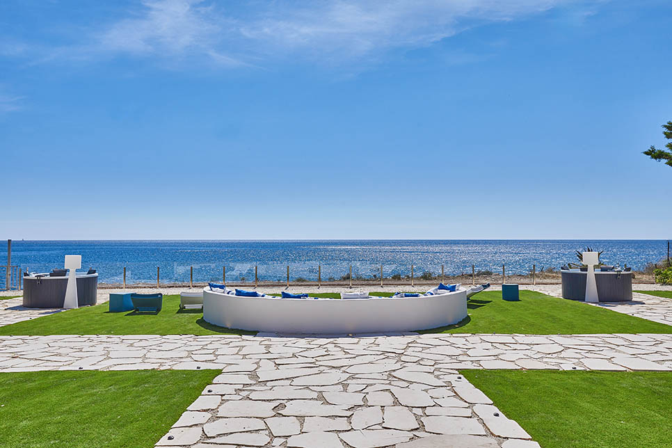 Ideally suited to a group of friends or a family with school age children, the contemporary villa has three en suite bedrooms and a spacious art and light-filled living room. Outside, a huge garden sweeps down to the gorgeous seating area where you can lie back in one of two hot tubs, warmed by the flames from the firepit, and watch the waves. Steps at the end of the garden lead directly down to the sea below.
