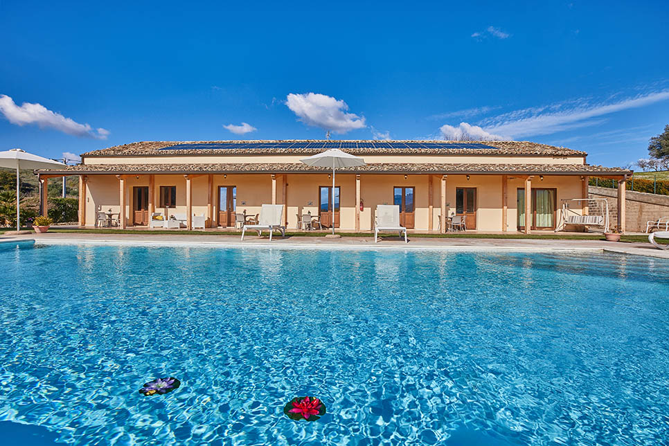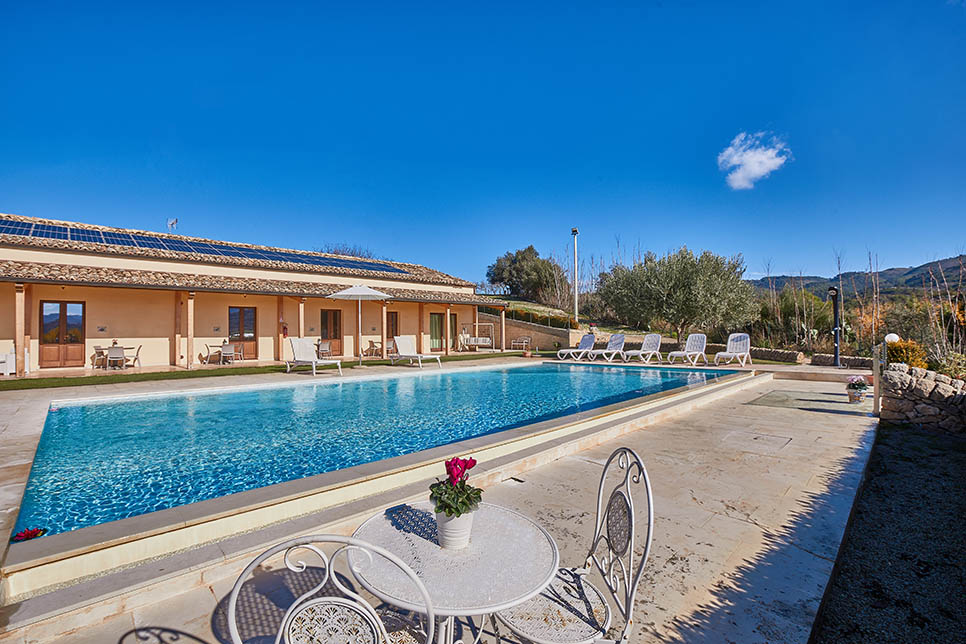 Spacious villa with independent units and scenic pool, perfect for family stays amidst Sicilian nature, with opportunities to enjoy olive groves, fruit trees, and nearby cultural sites.